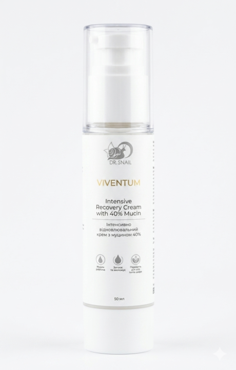 VIVENTUM Intensive Recovery Cream — інтенсивно відновлювальний крем із 40% муцину равлика, створений для глибокого зволоження, відновлення та підтримки природного шкірного бар’єру.