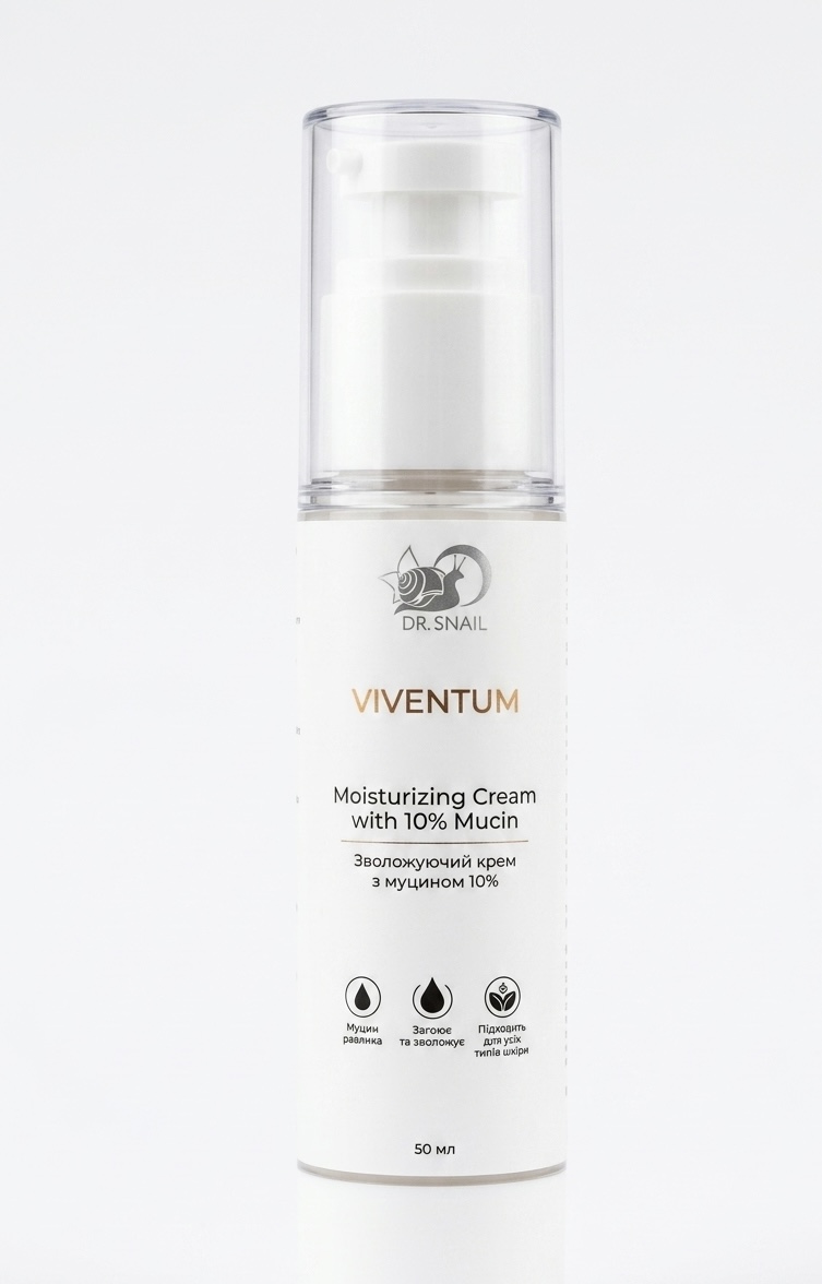 VIVENTUM Moisturizing Cream — зволожуючий крем для обличчя з 10% муцину равлика, створений для щоденного догляду, зволоження та підтримки природного балансу шкіри.